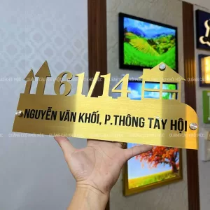 Bảng số nhà inox vàng xước SNI01 cắt laser fiber, nền mica đen tương phản