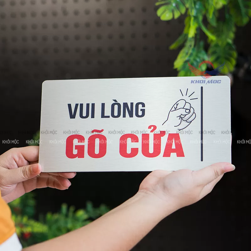 Bảng “Vui Lòng Gõ Cửa” KMD63 Bằng Nhôm Alu Xước | Khởi Mộc