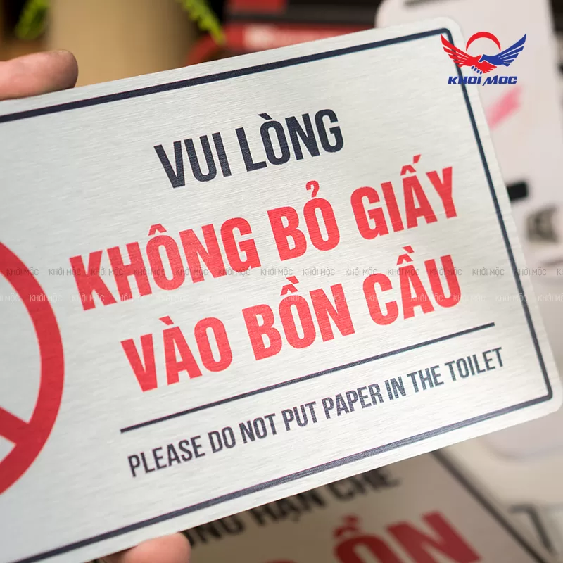 Biển nhắc nhở vui lòng không bỏ giấy vào bồn cầu” BAL01 chất liệu Alu
