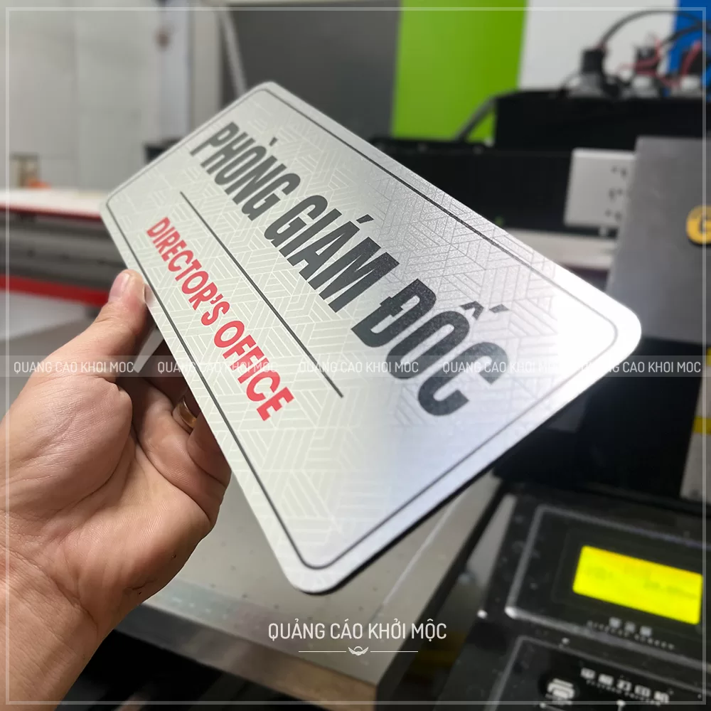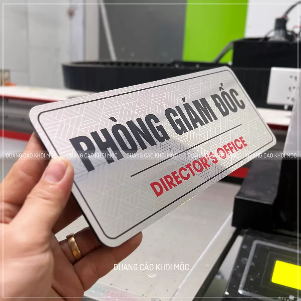 Bảng tên phòng làm bằng chất liệu Alu in UV là một giải pháp hiện đại và chuyên nghiệp để đánh dấu tên phòng: Giám Đốc, Marketing, Phòng Họp, Kế Toán, Kinh Doanh, Thu Mua, Giao Hàng,… Ưu điểm nổi bật của loại bảng này là: