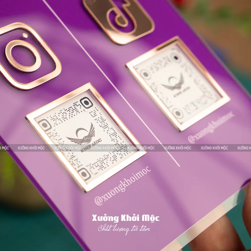 - Thiết kế: tùy chỉnh theo yêu cầu – logo, màu sắc, nội dung QR đều làm theo mong muốn của khách.
