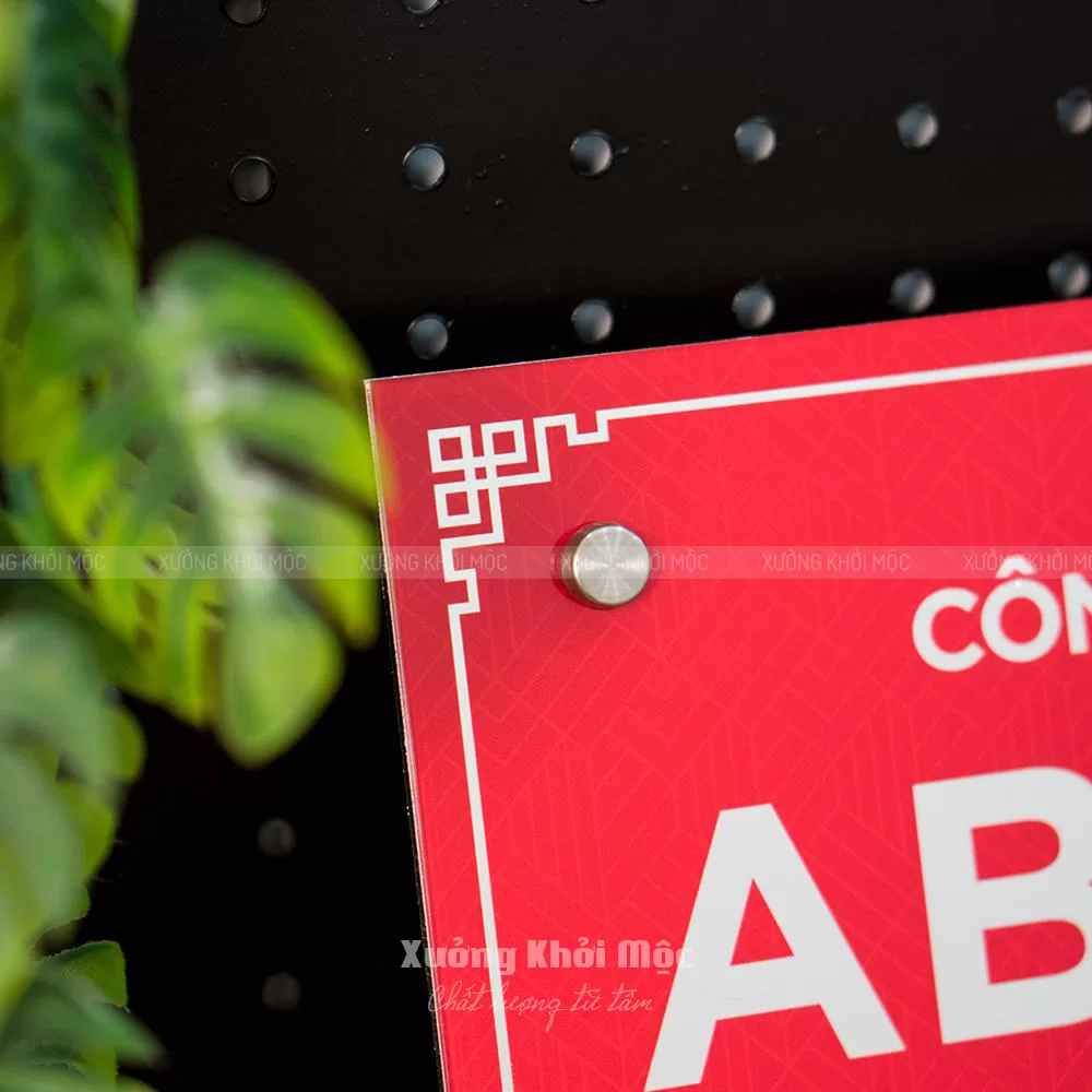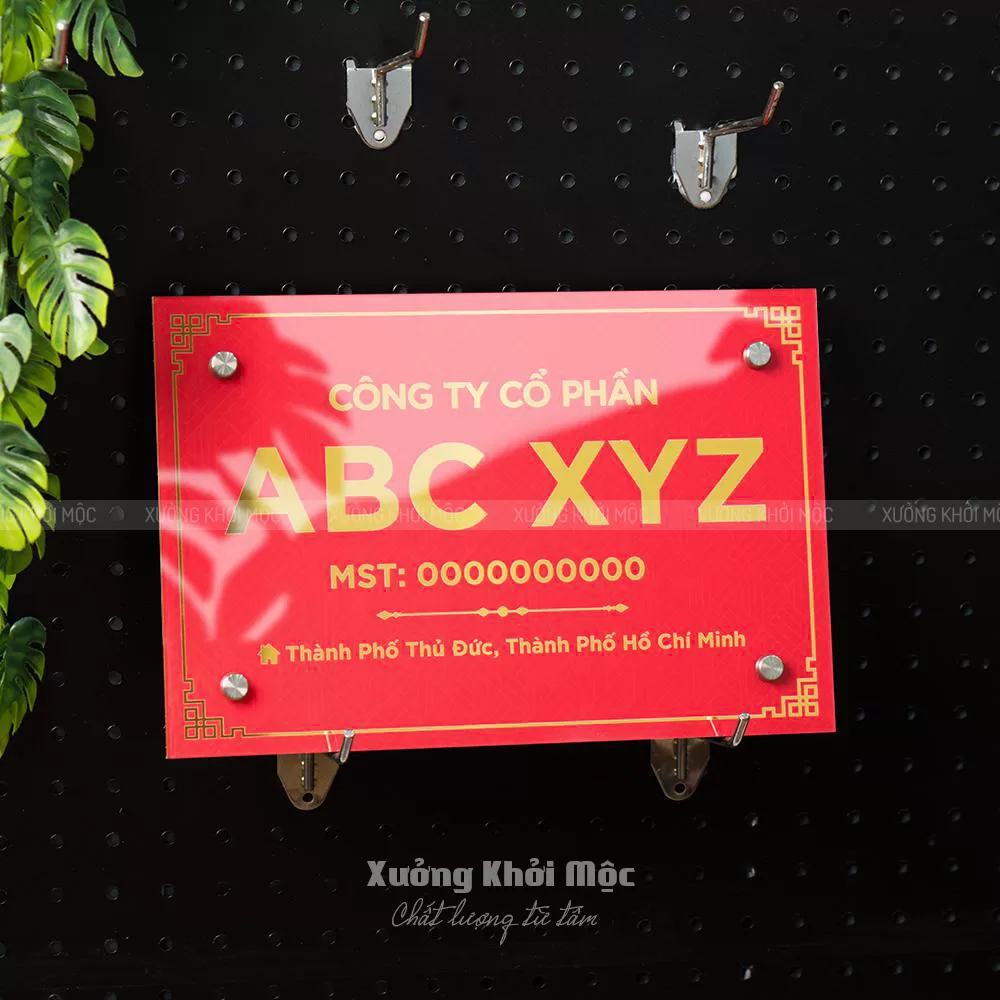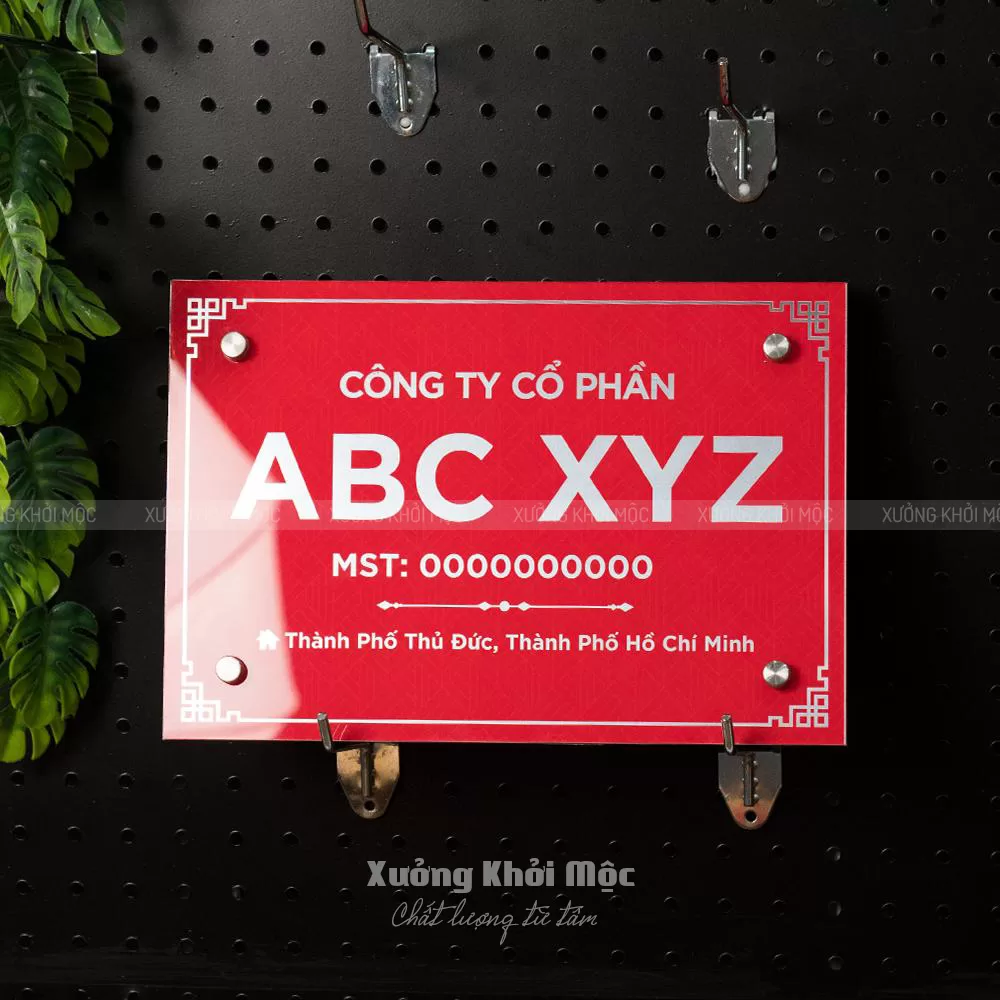 Mẫu bảng tên công ty IN UV sẵn sàng gia công nhanh – inbox ngay để được đội ngũ thiết kế Khởi Mộc hỗ trợ chi tiết.