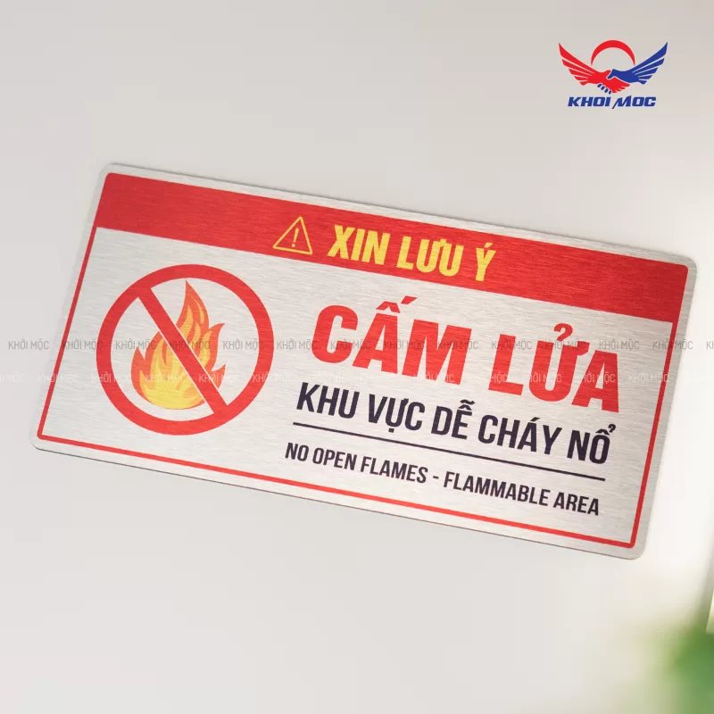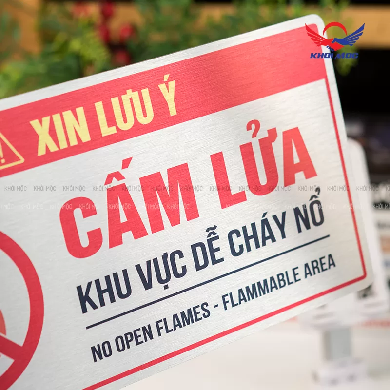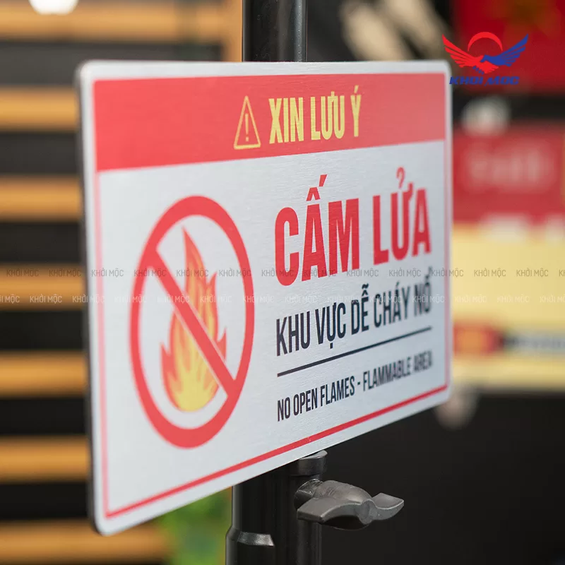 Biển alu BAL04 làm mẫu biển báo cấm lửa (No Open Flames – Flammable Area) Sử dụng ở các khu vực có nguy cơ cháy nổ cao. Là mẫu biển báo quan trọng giúp doanh nghiệp, nhà xưởng, kho bãi và công trình xây dựng tuân thủ các yêu cầu về Phòng cháy chữa cháy (PCCC) và nâng cao ý thức an toàn cho người lao động.