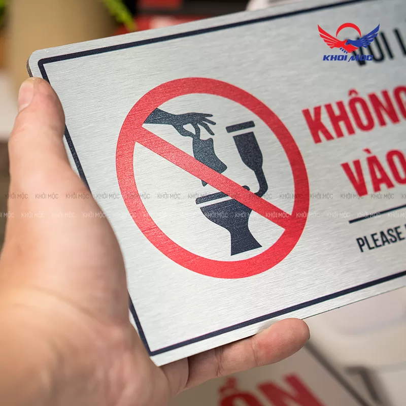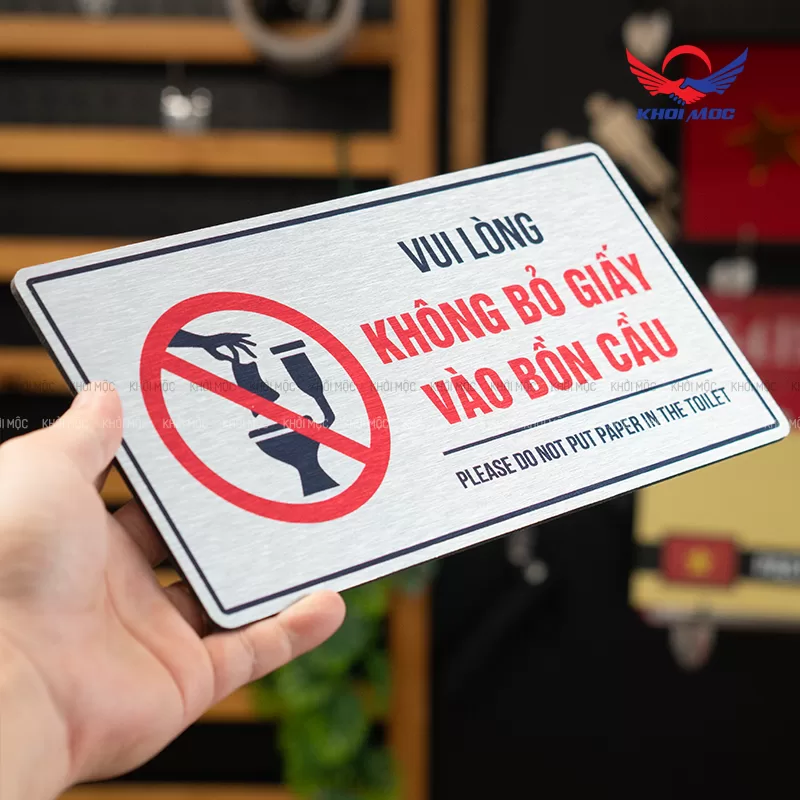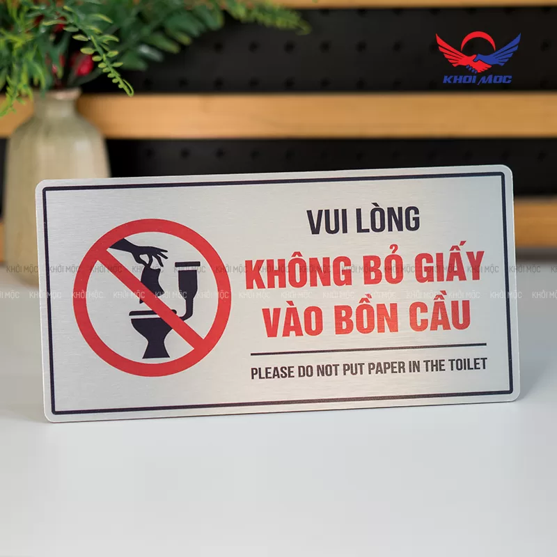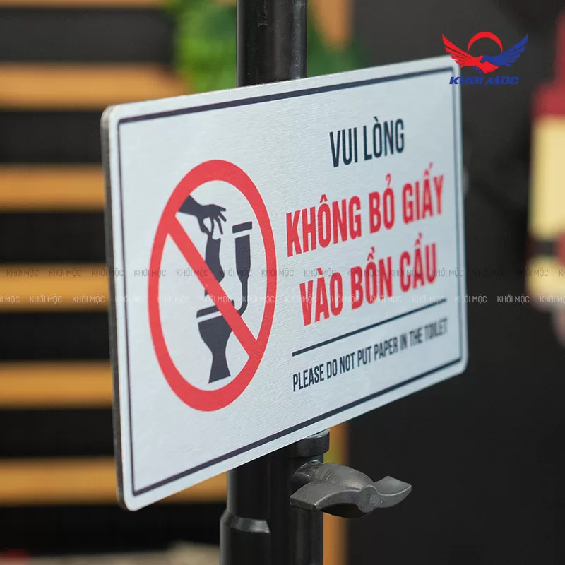 | Nội dung | “Vui lòng không bỏ giấy vào bồn cầu / Please do not put paper in the toilet” Biểu tượng trực quan, dễ nhận biết, phù hợp cho mọi đối tượng. |