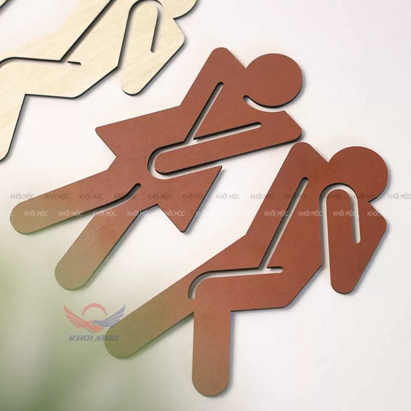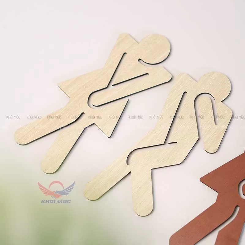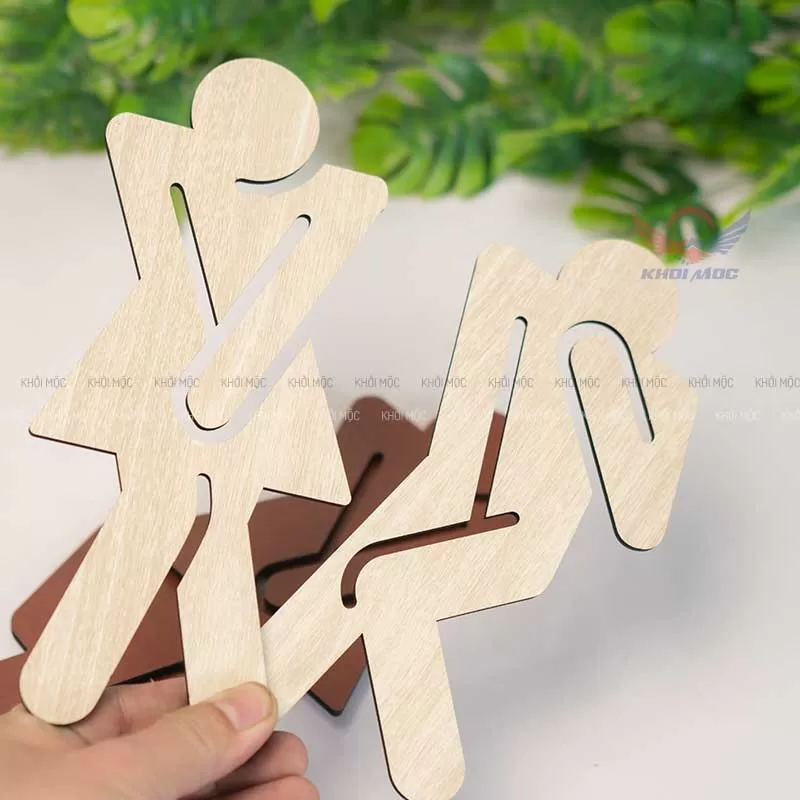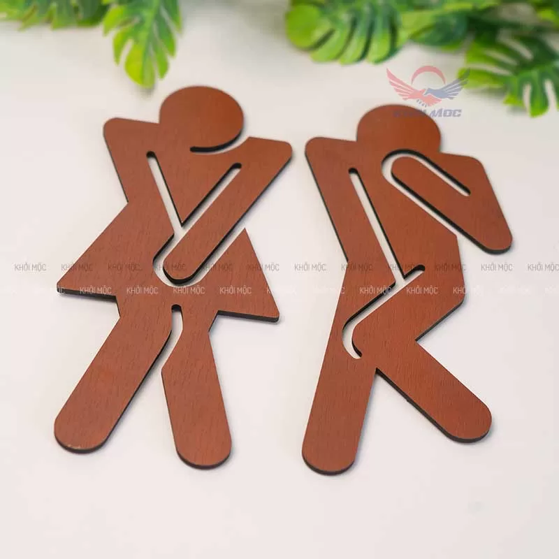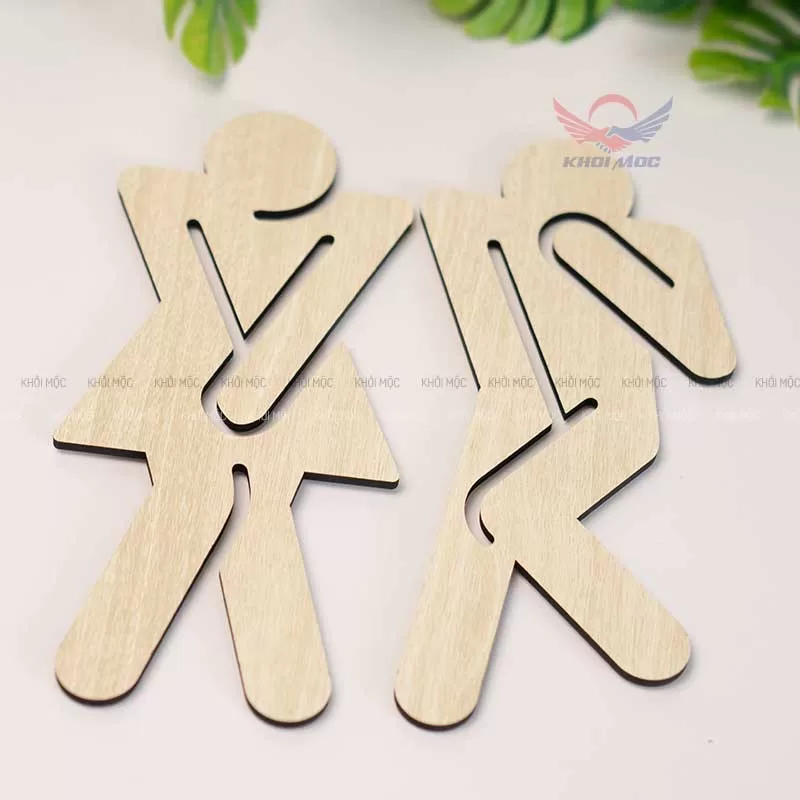 Bảng toilet gỗ cắt laser biểu tượng nam nữ dán tường tiện lợi, giá rẻ