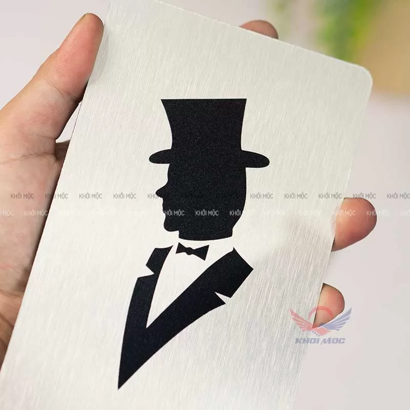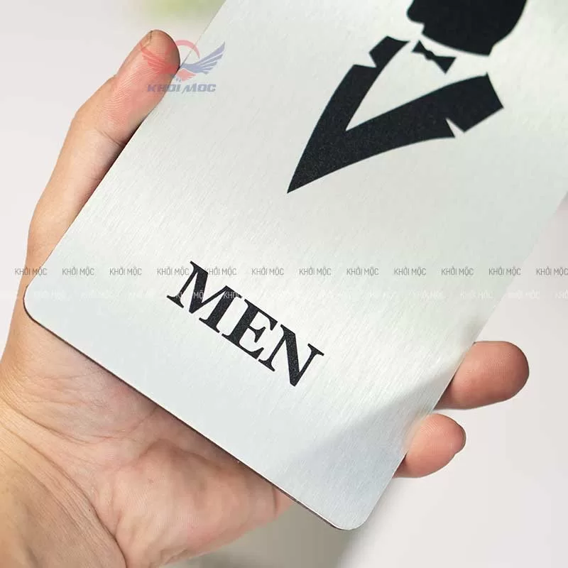 Chất liệu alu xước kết hợp in UV giúp bảng bền màu, chịu ẩm tốt, thích hợp cả trong môi trường toilet.