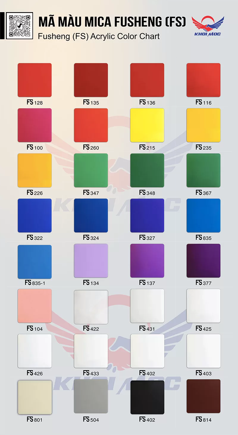 Bảng mã màu Tấm Mica Fusheng (FS) Acrylic