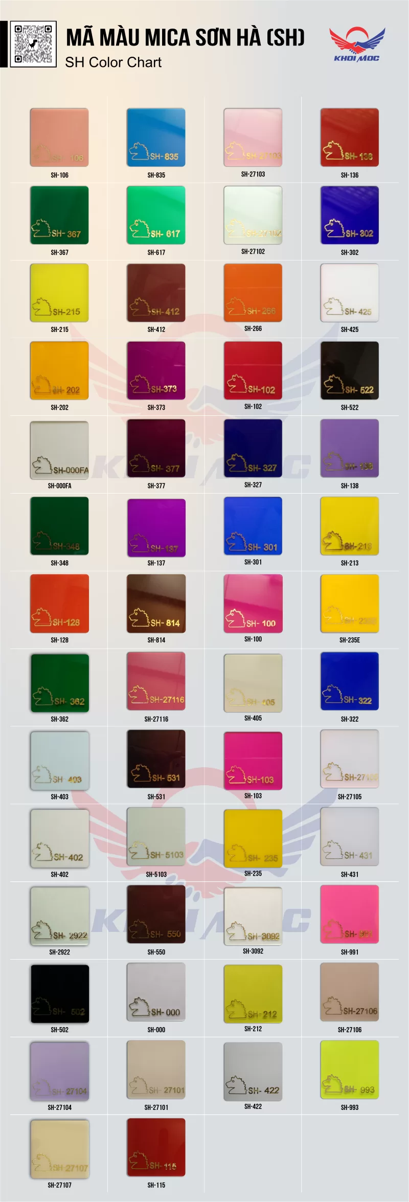Bảng mã màu Tấm Mica SH (Sơn Hà / Đầu Ngựa)