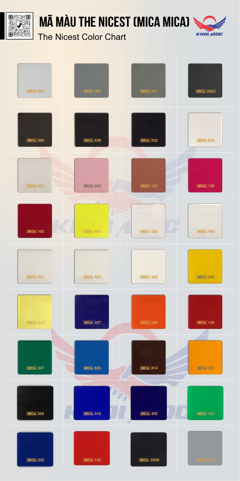 Bảng mã màu tấm nhựa mica The Nicest (Mica Mica)
